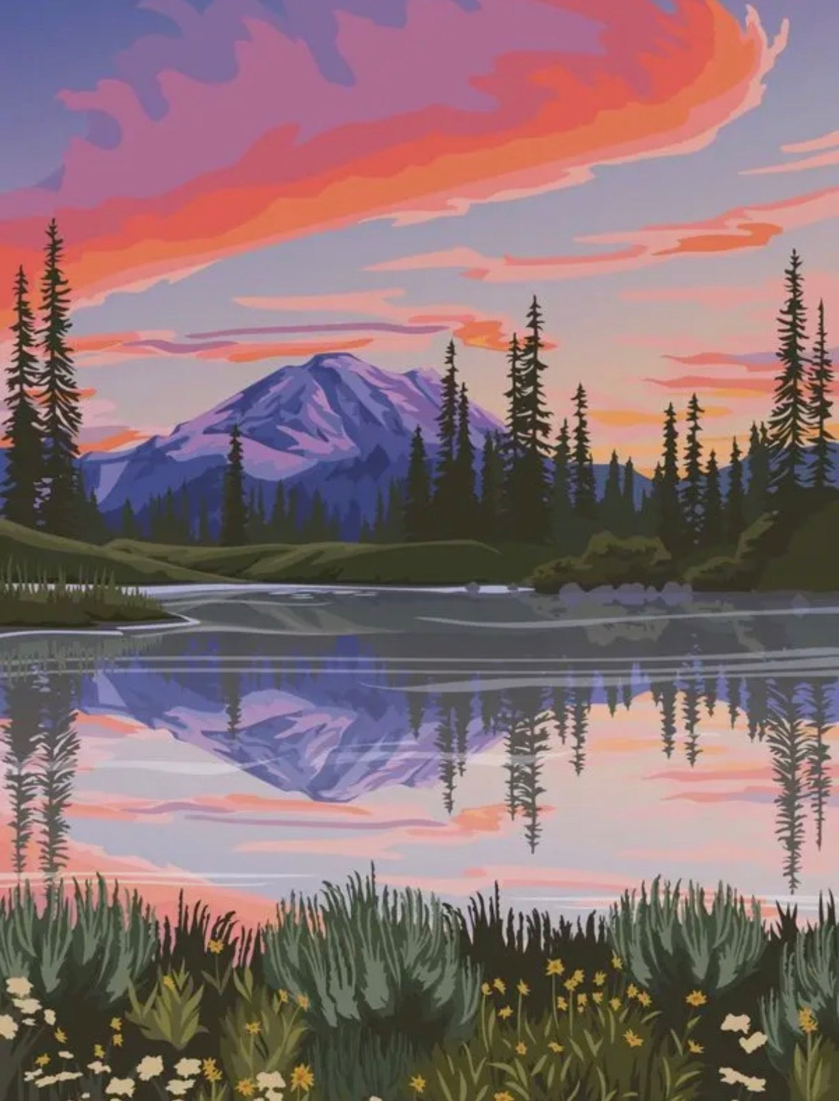 Indulge in the mesmerizing hues of a summer evening with our 'Summer Glow' puzzle. As the sun bids farewell, it paints the sky in delicate shades of pinks and purples, casting a dreamy ambiance over the tranquil mountain lake below. With serene waters and vibrant wildflowers adding a touch of enchantment to the scene.